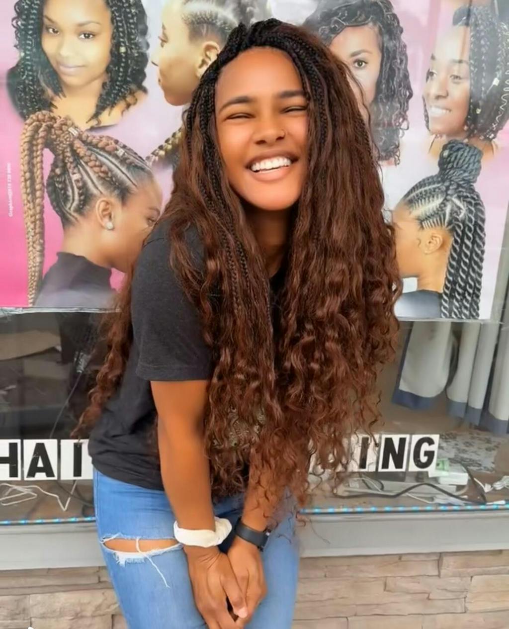 Elevate your hairstyle with Eayon Hair crochet boho box braids, featuring the stunning #1B/4 color mix that blends natural black and warm brown hues.