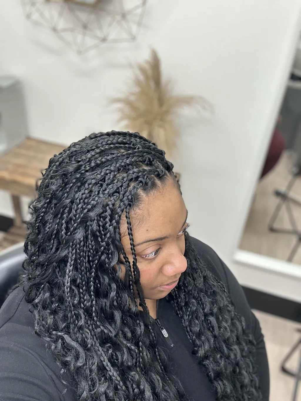 Eayon Hair’s pre-looped crochet braids combine human and synthetic hair for easy, quick installation. These 18-inch boho box braids save time and money while offering a natural look. Perfect for those seeking stylish curls without the long wait of traditional braiding.